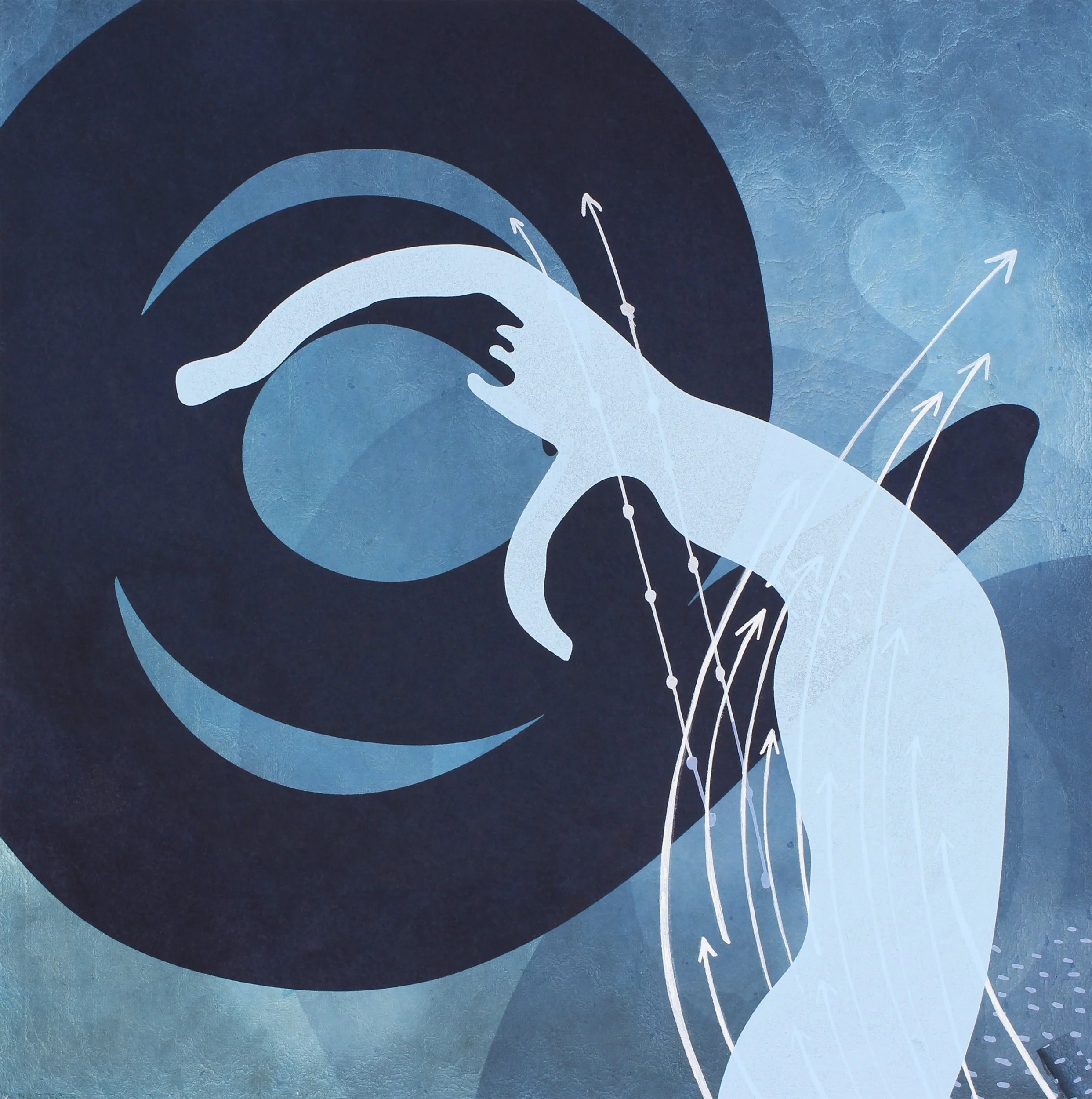 Orthione griffensis, drawing ink, screenprint and acrylic , 10” x 10”